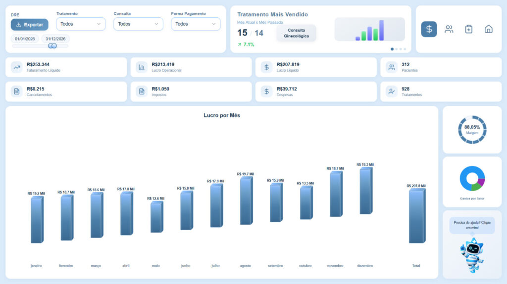 Ele permite o registro automático de receitas e despesas, integrando diretamente com atendimentos realizados, o que evita retrabalho e reduz erros manuais. Além disso, oferece controle de fluxo de caixa em tempo real, possibilitando acompanhar entradas, saídas e saldo de forma clara e organizada.